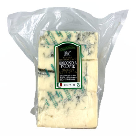 正式には『ストラッキーノ・ディ・ゴルゴンゾーラ』といわれています。ドルチェ『甘口』タイプに比べカビが大理石模様のようにびっしりと入っていて、通好みのブルーチーズです。『ストラッキーノ』とは、疲れたという意味。冬の前に山からおりてきた牛たちが途中のゴルゴンゾーラ村で休息している時につくられ、その村が名前の由来になっています。世界三大ブルーチーズの1つといわれています。