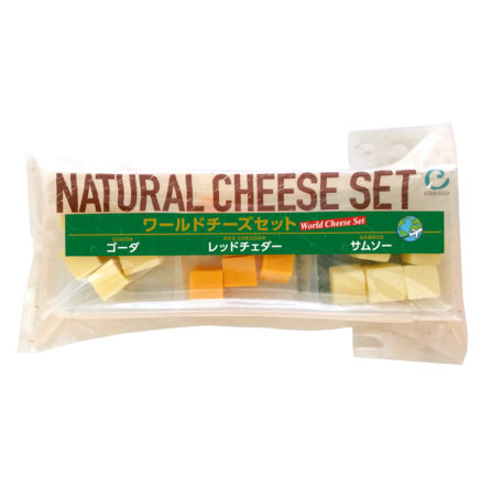 ゴーダ、ニュージーランド産のレッドチェダー、デンマーク産のサムソーの3種類のチーズが楽しめるアソートセット。