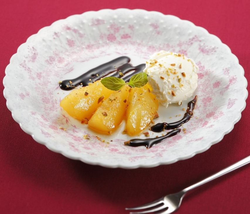 洋梨のカラメリゼ イゴールマスカルポーネ添え